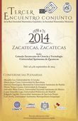 La Sociedad Matemática Mexicana ha hecho pública la web del Tercer Encuentro Conjunto SMM-RSME:que se celebra desde hoy día 1 hasta el 4 de septiembre de 2014 en la Universidad de Zacatecas. El programa completo puede consultarse en la web del Encuentro. Con motivo del encuentro también se realizó ayer 31 de agosto un Festival Matemático, en la Plaza Miguel Auza de la ciudad de Zacateca.